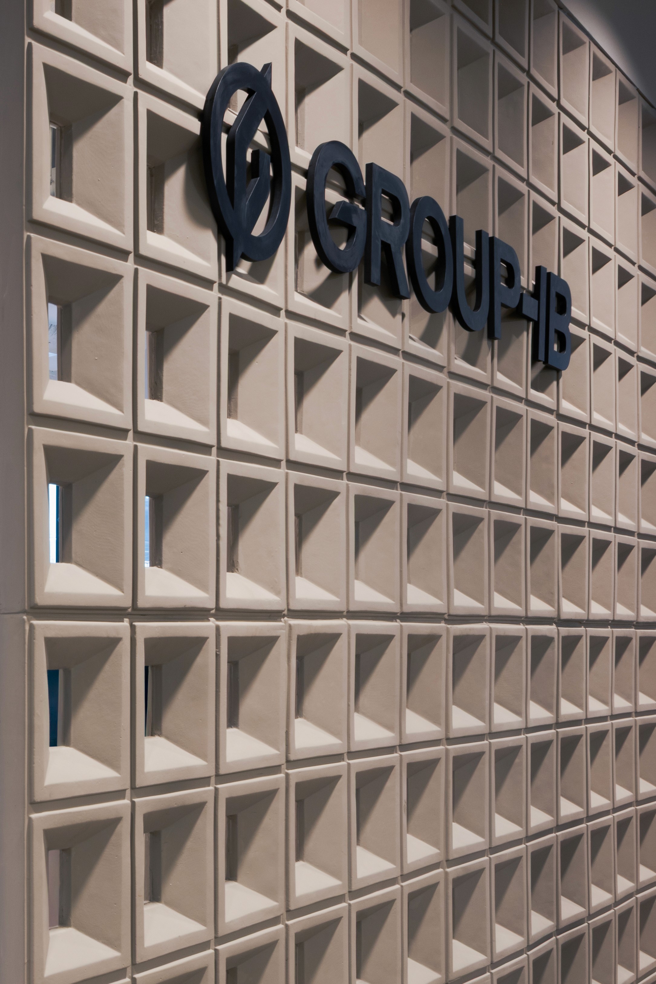 A perforated grid wall that defines without dividing, creating flow while anchoring the space with quiet presence.